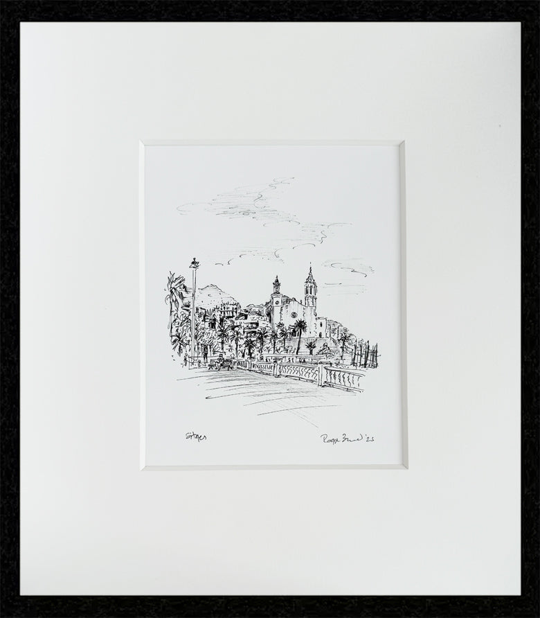 Capture the charm of the beautiful Spanish coastal town of Sitges with this original ink drawing. This artwork beautifully depicts the essence of this vibrant Mediterranean destination.