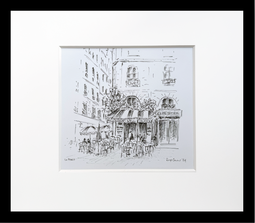 Enter the enchanting world of Parisian cafe culture with this captivating original ink drawing of Le Paradis, a beloved venue that embodies the joie de vivre that makes Paris the eternal City of Light.