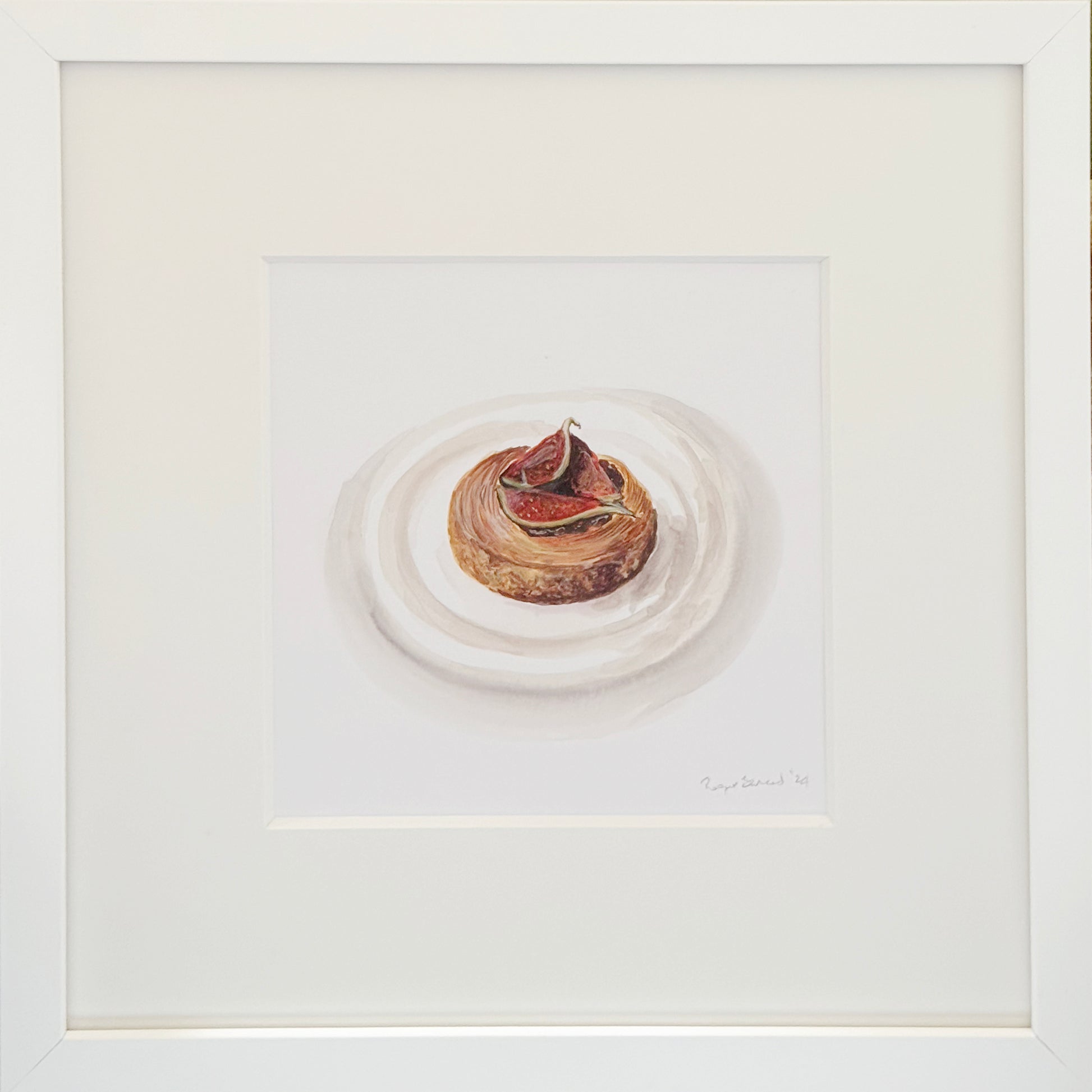 This exquisite original watercolour captures the delicate beauty of a classic French Tarte au Figue, painted with meticulous attention to detail.
