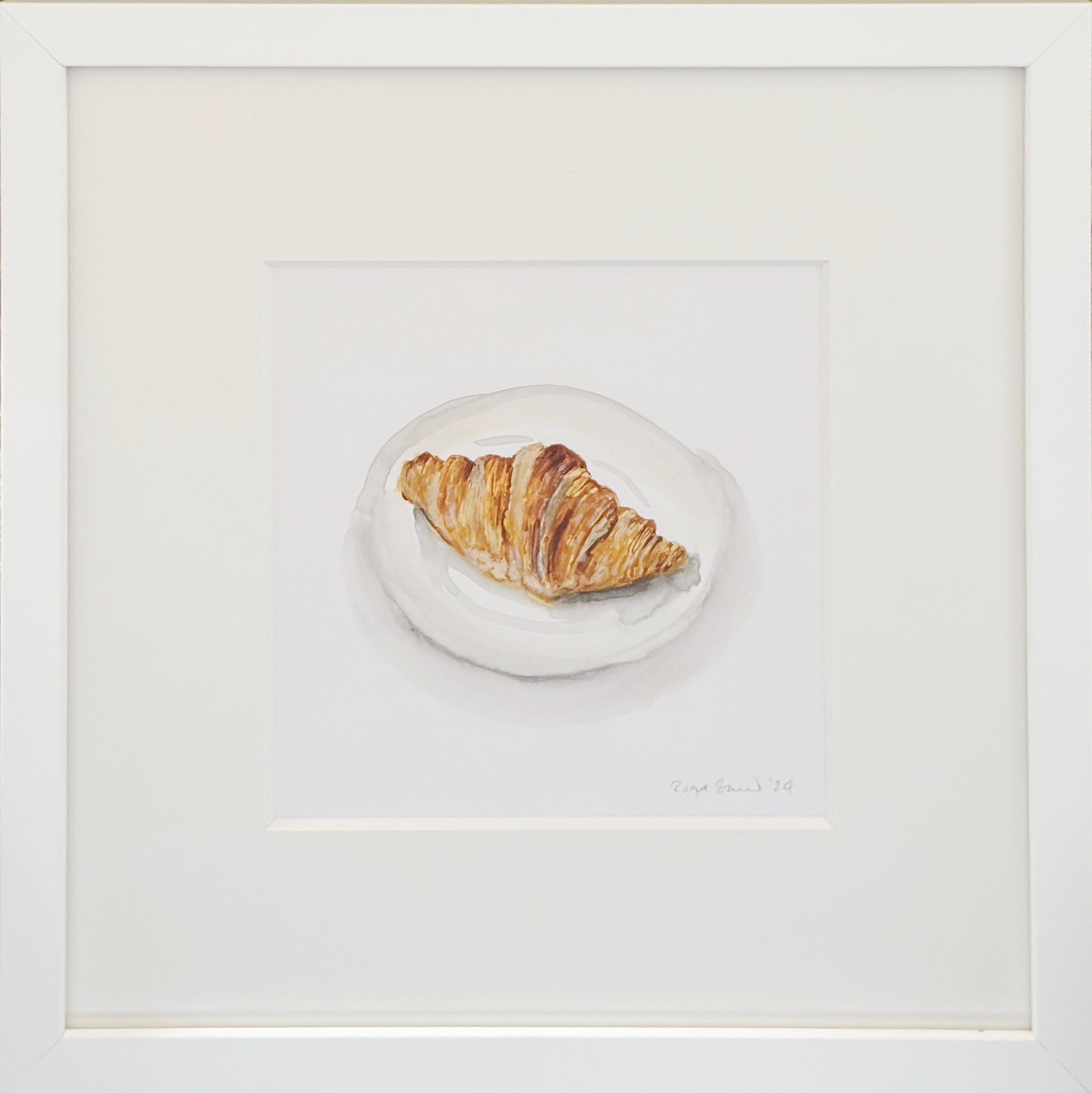 This exquisite original watercolour captures the delicate beauty of a classic French Croissant, painted with meticulous attention to detail.